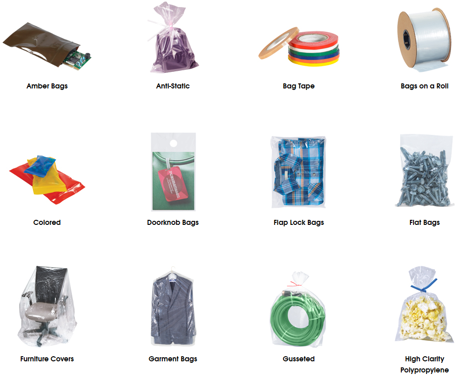 Multiple sizes and thicknesses of poly bags available